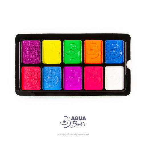 Aqua Bond´sPaleta Pocket Neón by Aqua Bond´s es maquillaje a base agua, es de alta calidad, no es grasoso, no pica en la piel, no es tóxico y se retira con u...