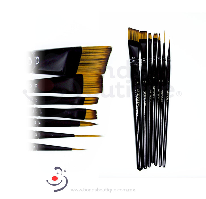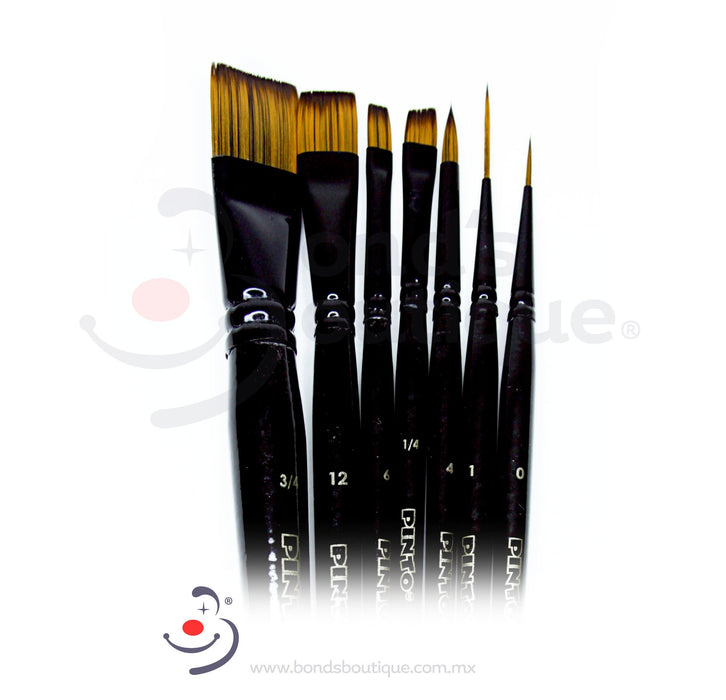 El pincel ideal para el efecto de punteo. De excelente rebote y provee un buen fluido líquido. Elaborado con puntas degrafiladas, los cuales permiten crear y acentuar el efecto con todo tipo de tintas o pinturas diluidas para crear efectos de plumeo. Muy nombrado en el face paint o pinta caritas como pincel de "Gota". Cerdas de pelo sintético "Golden".